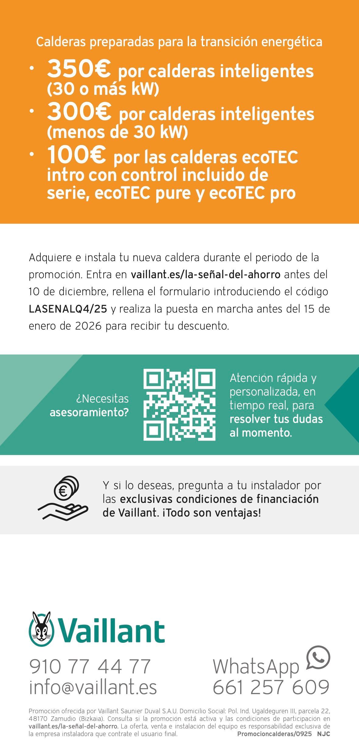 RENOVE #la-señal-del-ahorro de VAILLANT hasta 350 € de bonificación para renovar tu caldera (hasta el 10 de Diciembre de 2025)