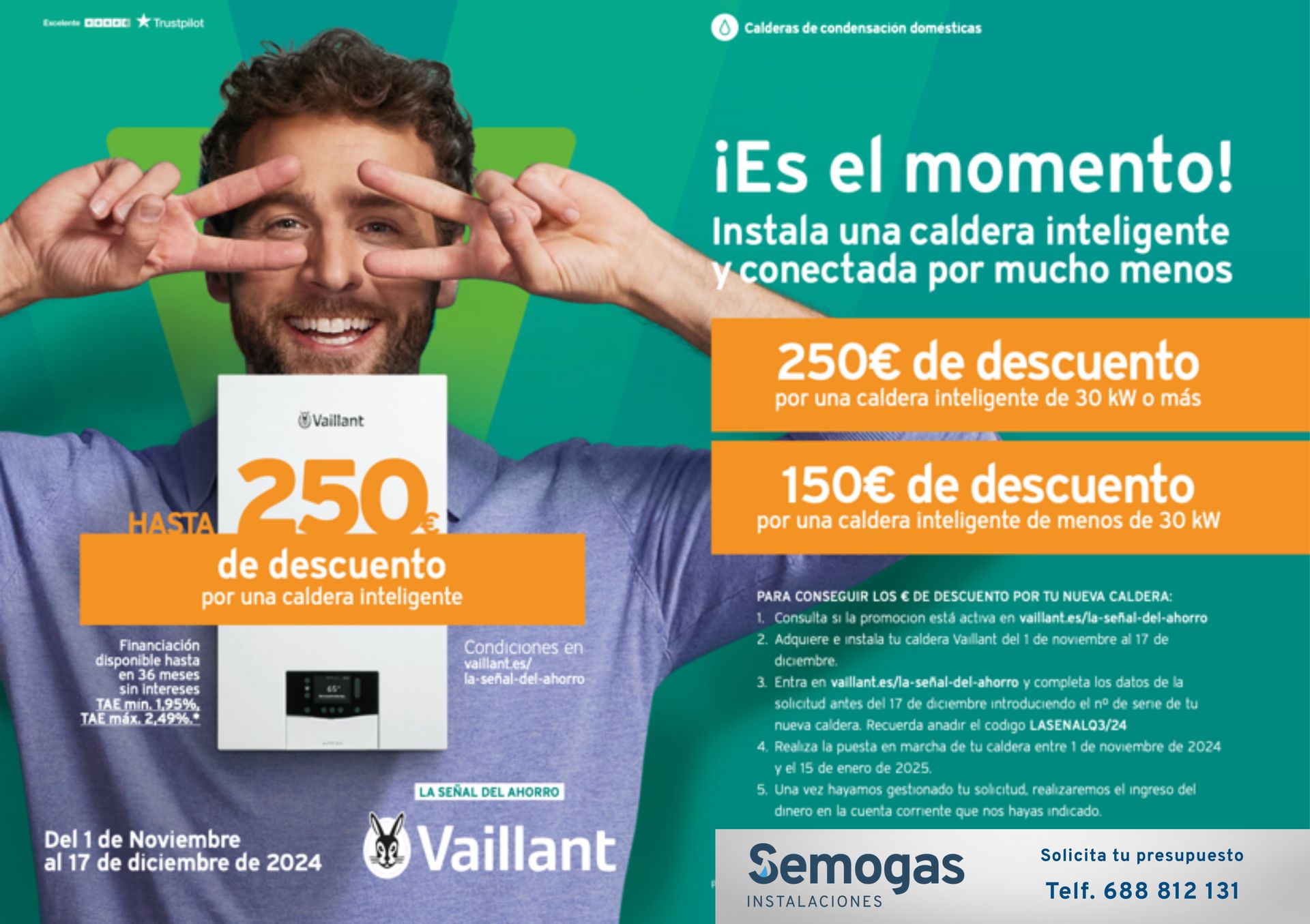 Para beneficiarte de la promoción deberás adquirir tu nueva caldera durante periodo de vigencia.